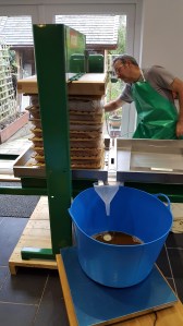With great excitement the new hydraulic Voran press arrived. Whilst initially the output appeared impressive, the time consuming element of unloading the cloth cheeses and cleaning and then reloading dampened our enthusiasm considerably. Maybe the process has to be rethought?